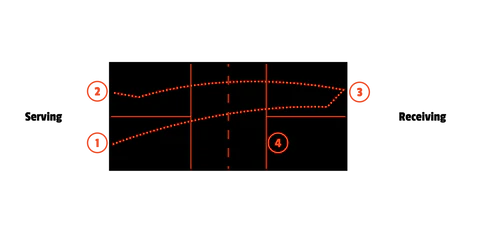 - Khi đội nhận bóng giành được quyền giao bóng, người chơi ở ô bên phải sẽ bắt đầu giao trước.